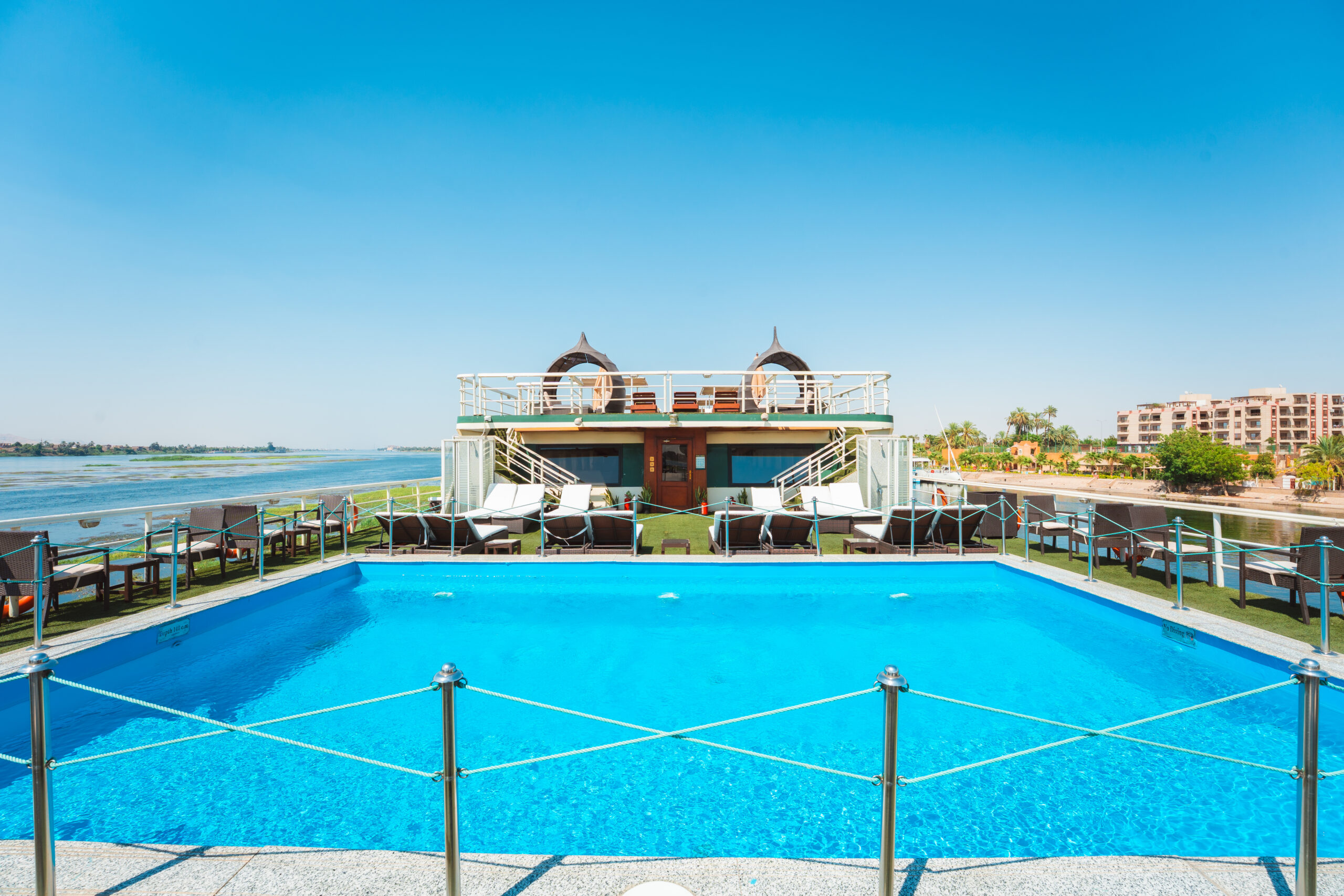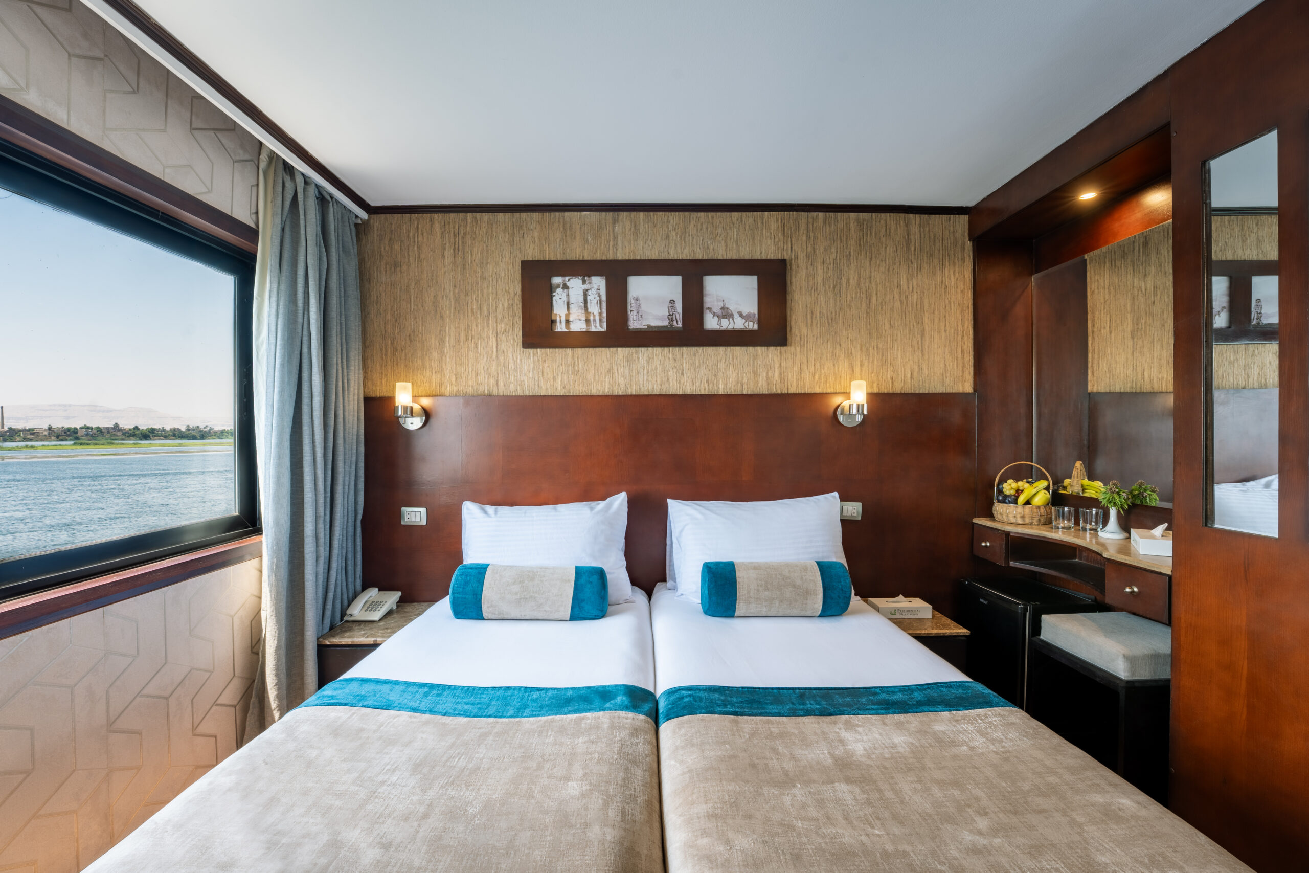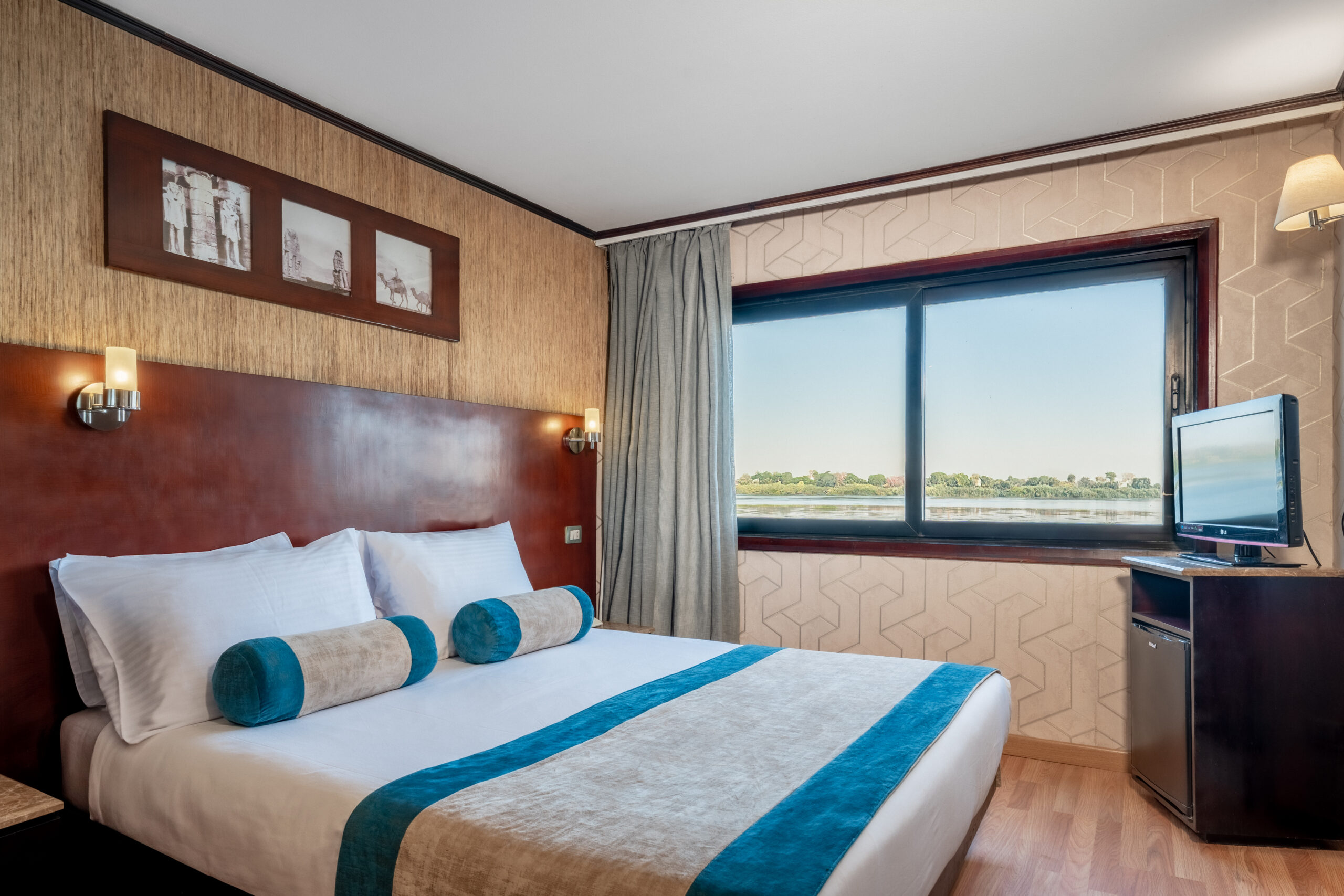 - غرف واسعة مجهزة بأفضل وسائل الراحة وإطلالات بانورامية على النيل