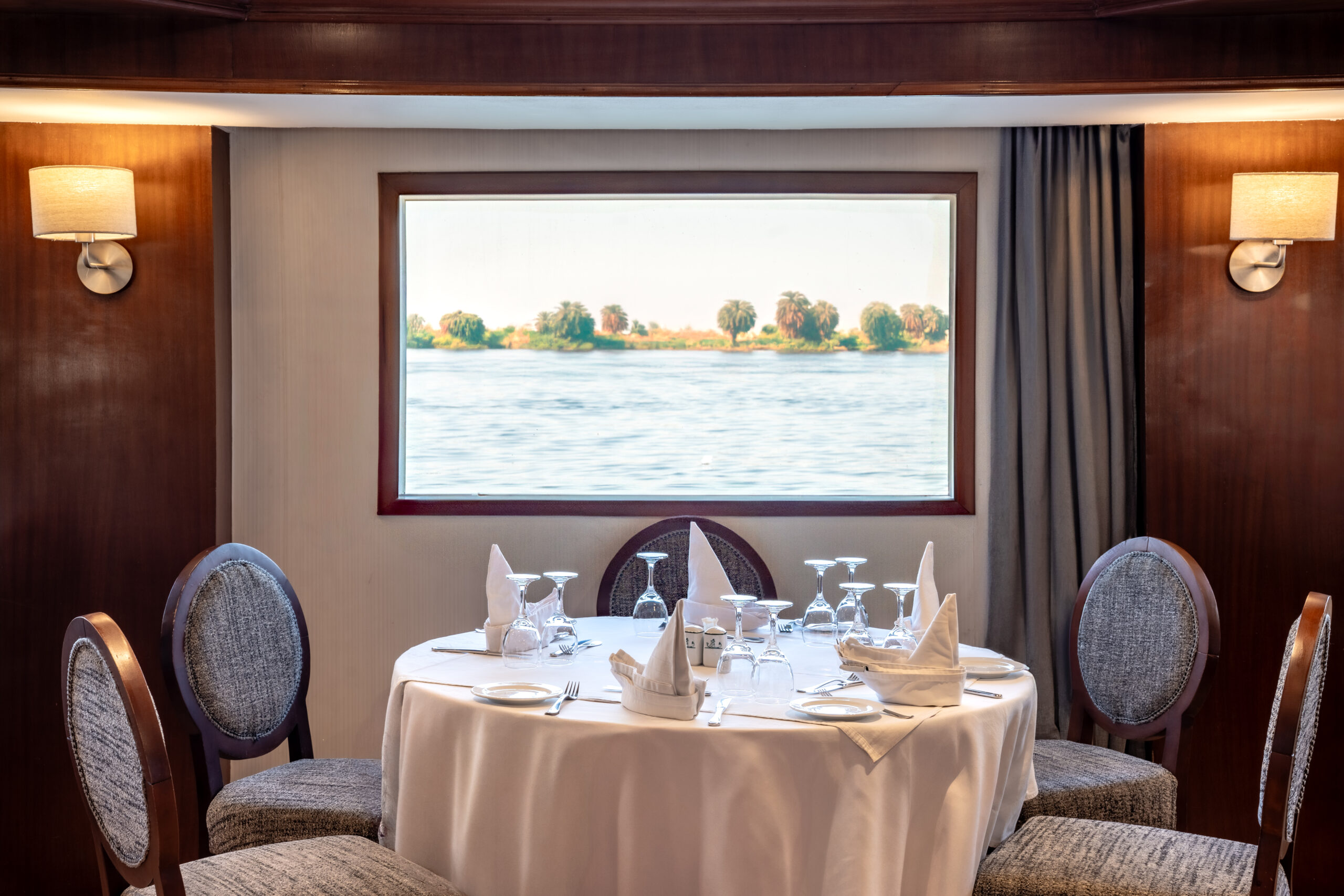 تتسع Admiral Nile Cruise المطعم والبار وسطح التشمس لـ ١٥٠ شخصًا، ويوفران الراحة والرفاهية طوال رحلتك. يقدم المطعم بوفيه إفطار وغداء، ووجبة عشاء من اختيارك