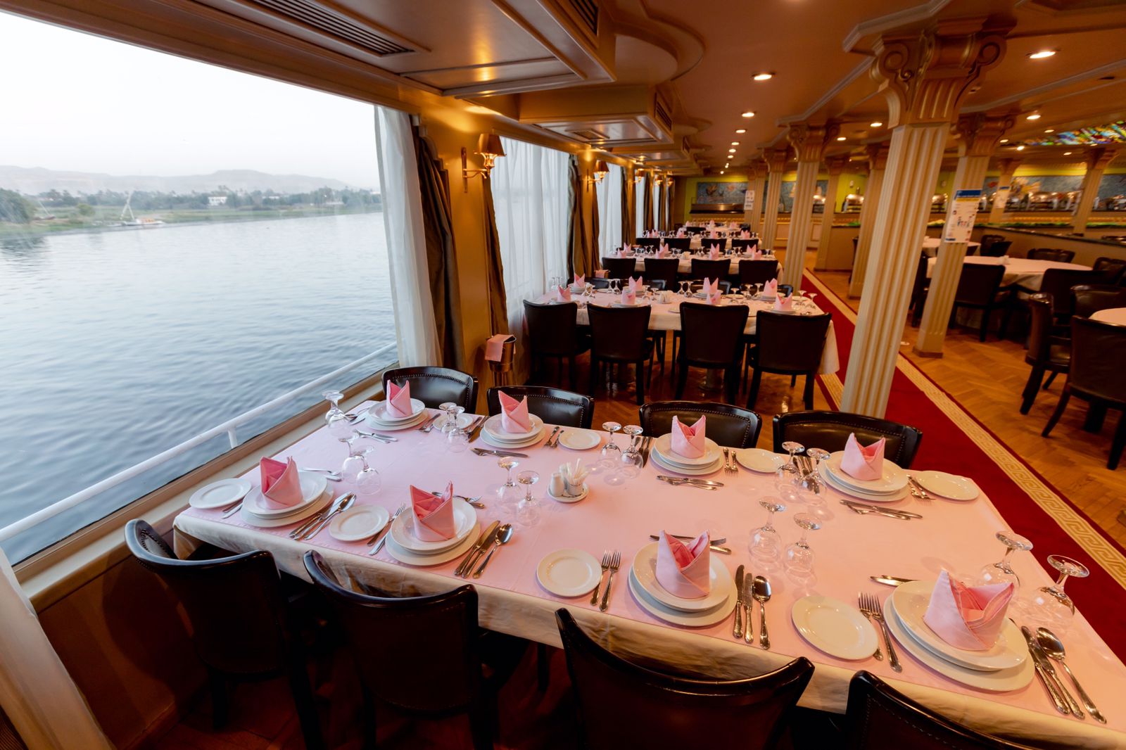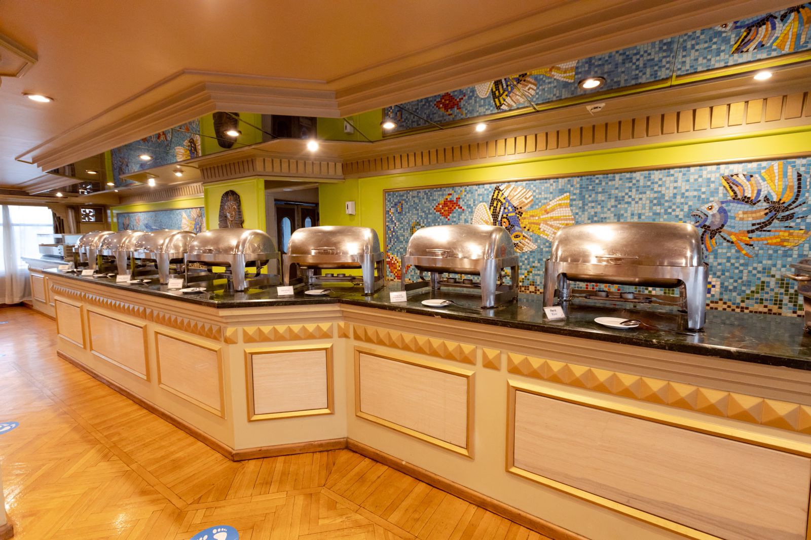 • مطعم فاخر بنظام الجلسة الواحدة يسع 160 فرد، يقدم بوفيه متنوع