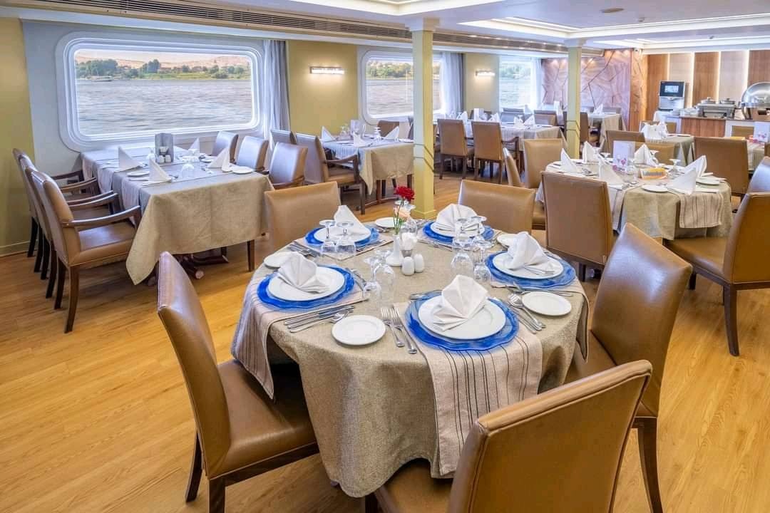 يقدم مركب سولاريس نايل كروزال 5 نجوم Nile Cruise Solaris 1 مكان إقامة أنيق وعصري مع إطلالة بانورامية واسعة على نهر النيل في الطريق بين الأقصر وأسوان